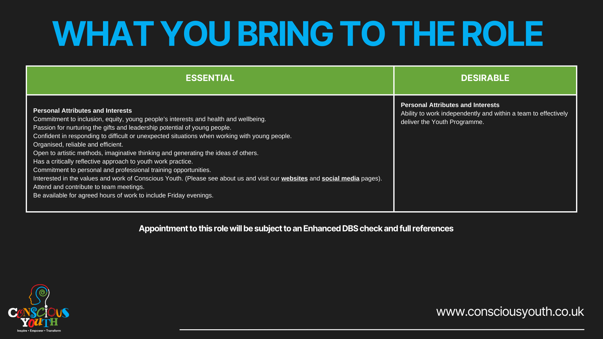 Conscious Youth is growing and we are always on the look out for unique individuals who match our energy and drive.
